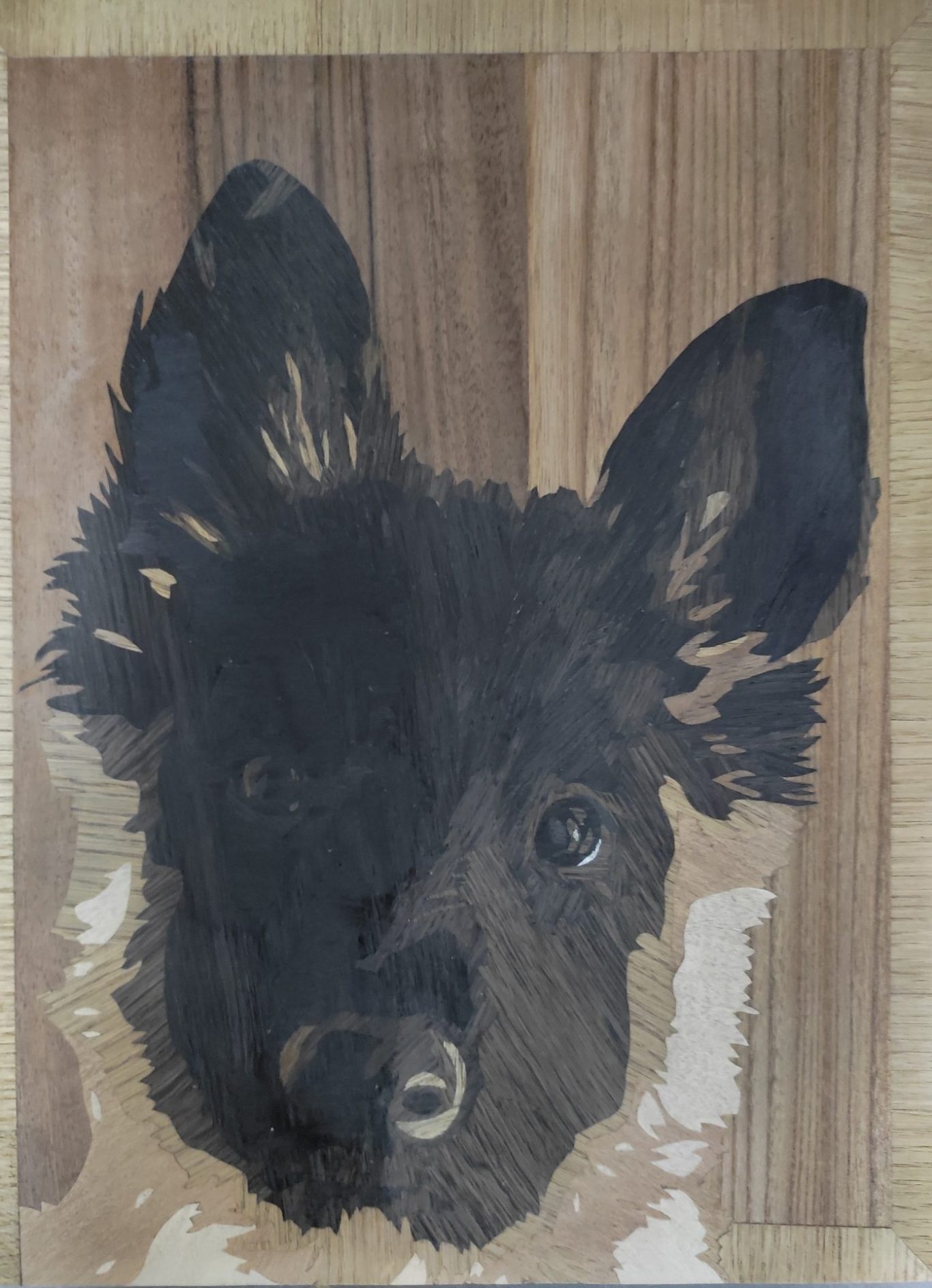 Comme pour les deux précédents tableaux, l'essence principale est le chêne de marais mais mélanger avec du tulipier teint en noir pour ajouter de la profondeur;