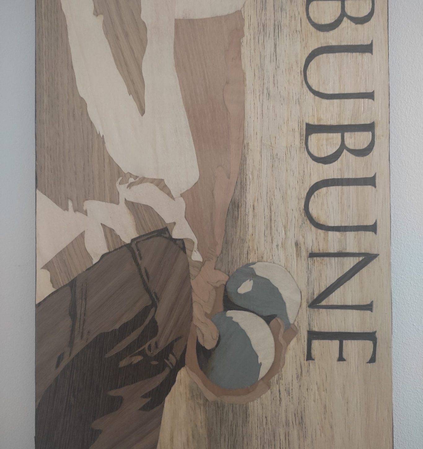 Pareil que pour le premier tableau, l'essence principale est le chêne de marais mais utilisé sous différents angles pour jouer avec la lumière et les différentes colorations du bois;